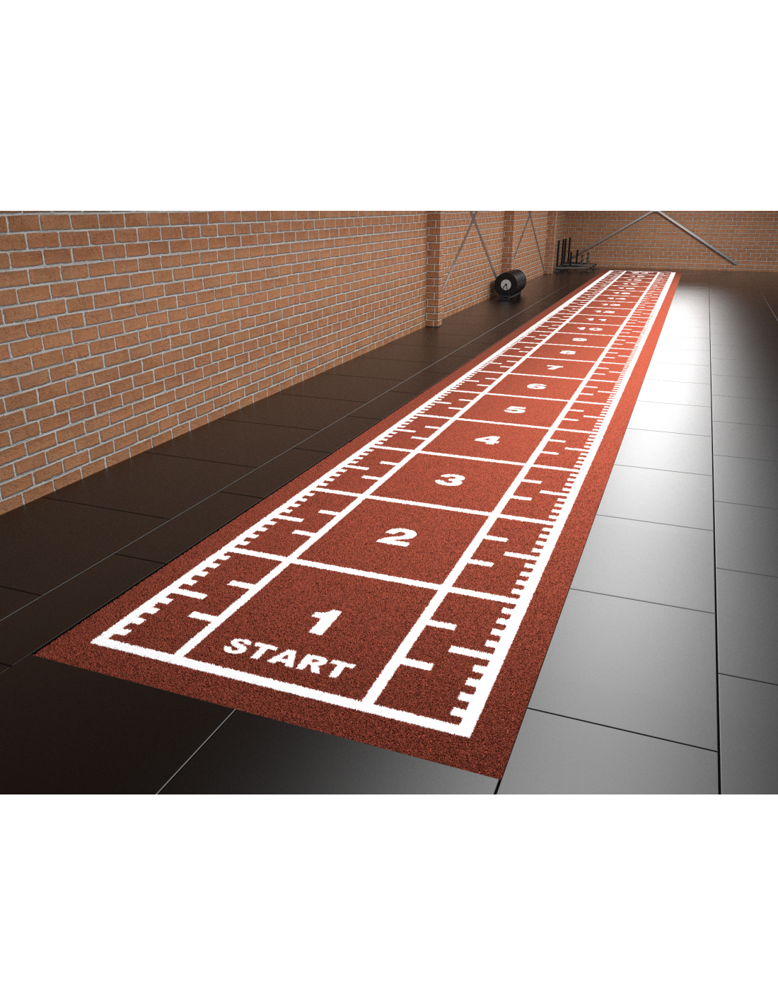 Die Markierungen sind nicht gemalt oder eingelegt. Es handelt sich um maschinell getuftete weiße Fasern, die die beste Option sind, um Ihre Bahn in einem fantastischen Zustand zu halten.